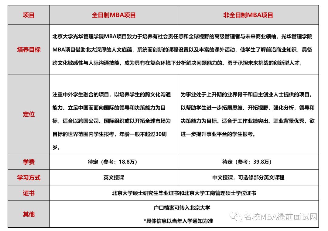 北京大学光华管理学院MBA2020年招生包含全日制MBA和非全日制MBA项目。